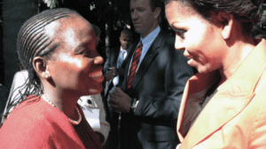 In questa foto la vediamo con Michelle Obama durante una visita a una clinica per malati di AIDS